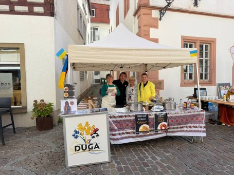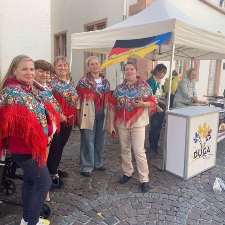 Am 30. August nahm DUGA am Interkulturellen Fest in Alzey (auf dem JUKU-Gelände) teil. Unser riesiger Kessel ukrainischer Borschtsch war ein Publikumsmagnet – viele Gäste kamen sogar für eine zweite Portion. Der ukrainische Chor „Solovejki“ sorgte mit seinem Auftritt für begeisterten Applaus. Gesammelte Spenden fließen in unsere humanitären Projekte.