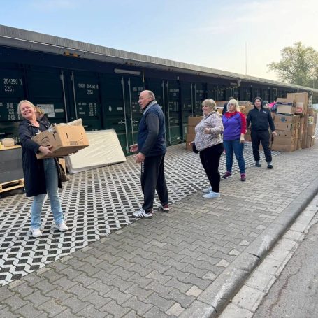 Am 11. Oktober 2025 ging die neunte große Hilfslieferung (14.800 kg) auf den Weg: Rollstuhltransport-Hilfsmittel, Spielzeug, Kleidung, Tierfutter, medizinische Sets und vieles mehr. Dazu kamen über 200 handgefertigte Perlen-Engel als kleine Hoffnungsbotschaften (eine neue Charge ist bereits in Arbeit).