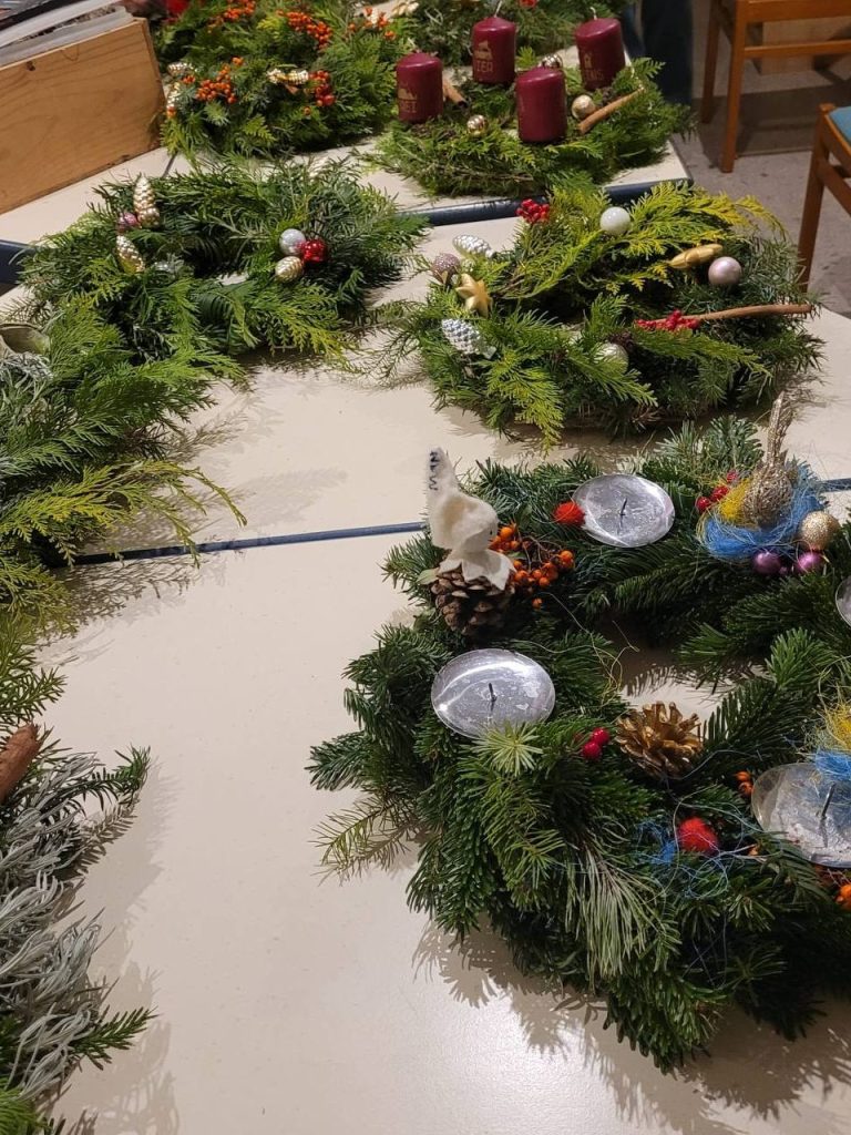 Am 26. November fand der traditionelle Adventskranz-Workshop statt: Frauen und Kinder bastelten in gemütlicher Runde Kränze aus frischem Tannengrün.