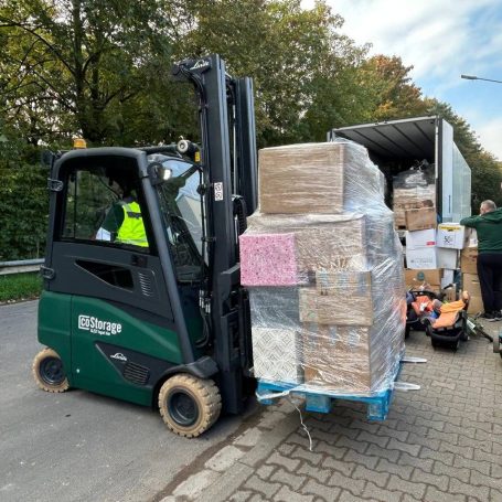 Besonderer Dank gebührt Pierre Zwilling und seinem Unternehmen CoStorage, das seit mehr als einem Jahr kostenfreie Lagerflächen zur Verfügung stellt. Das erleichtert Sortierung, Lagerung und Beladung enorm und erweitert durch Pierres Kontakte unser Netzwerk.