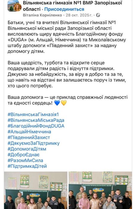 Ende des Sommers startete eine Aktion für Kinder aus Wolnjansk (Region Saporischschja). Ukrainische Familien hier vor Ort packten Geschenkboxen mit Schulmaterial, Kleidung, Schuhen und Süßigkeiten für Schüler der Klassen 1–4. Jedes Kind auf der Liste der Schulleitung erhielt ein Paket – die strahlenden Gesichter waren der schönste Lohn.
